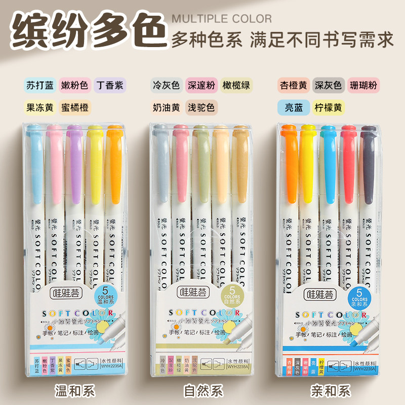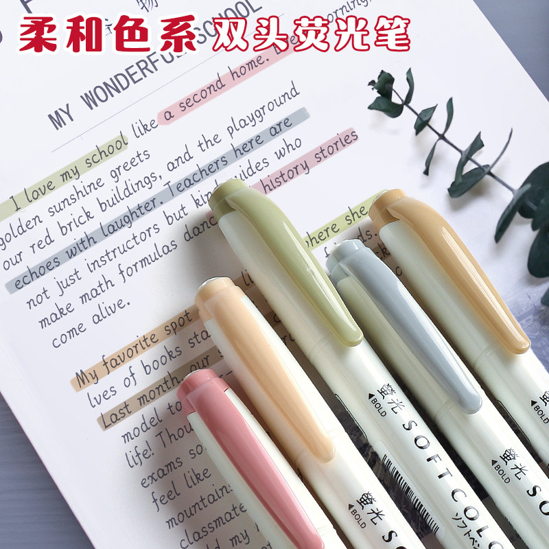 📚 荧光笔双头记号笔彩色划重点小学生手抄报专用笔初中生做笔记专用高颜值ins风标记笔银光笔淡色系萤光笔莹光