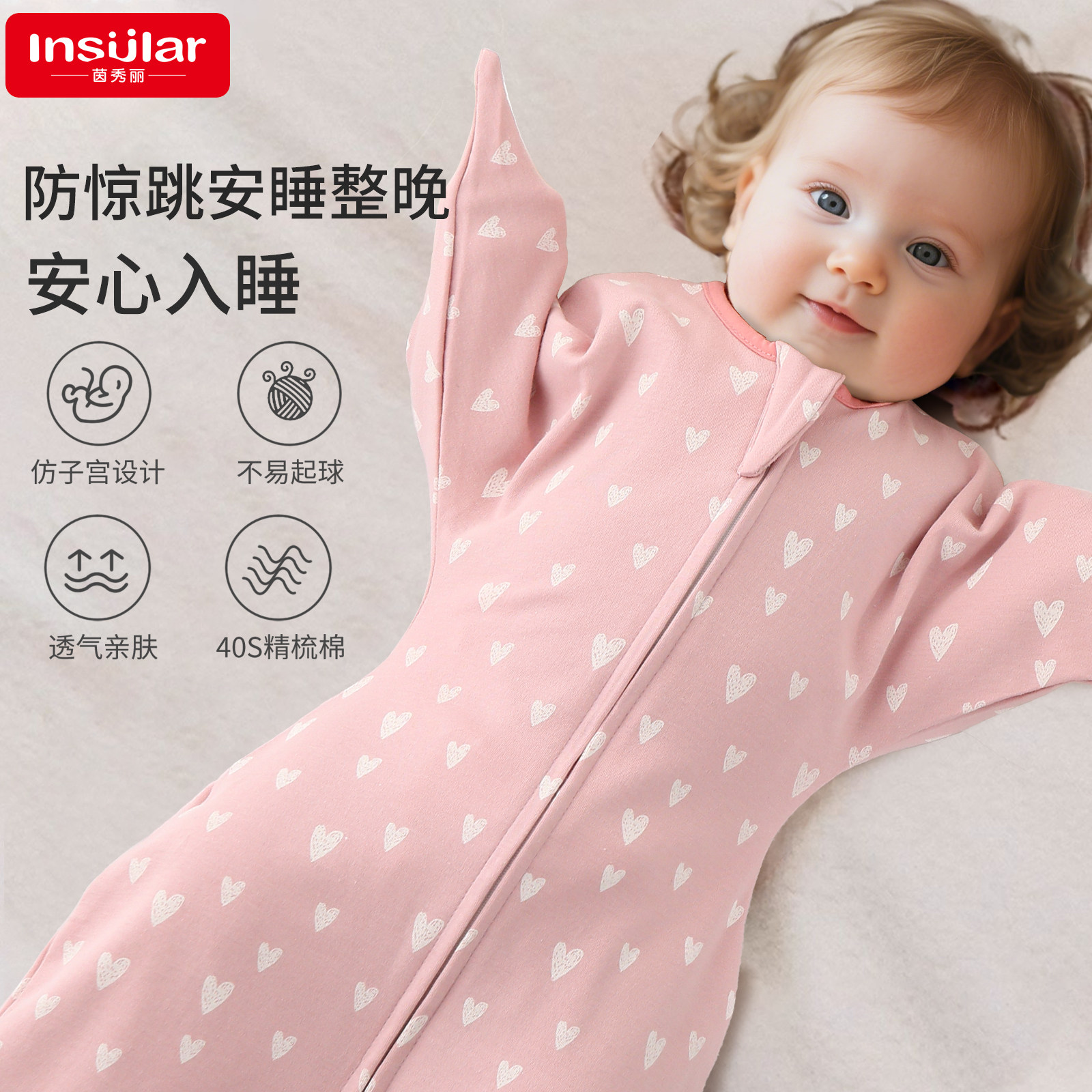 📚 insular333B新生婴儿投降式防惊跳睡袋夏季宝宝睡觉神器双向拉链