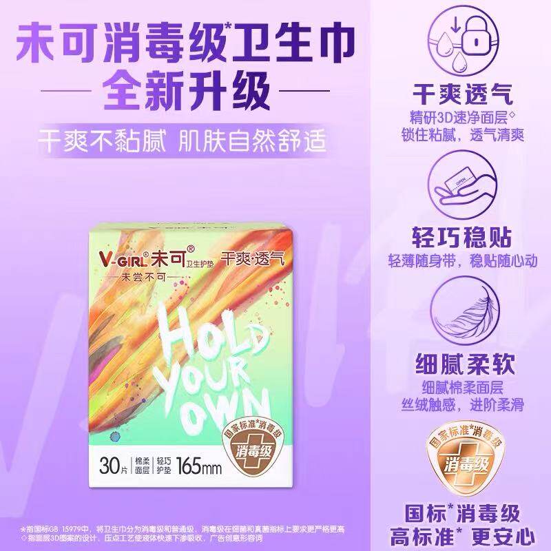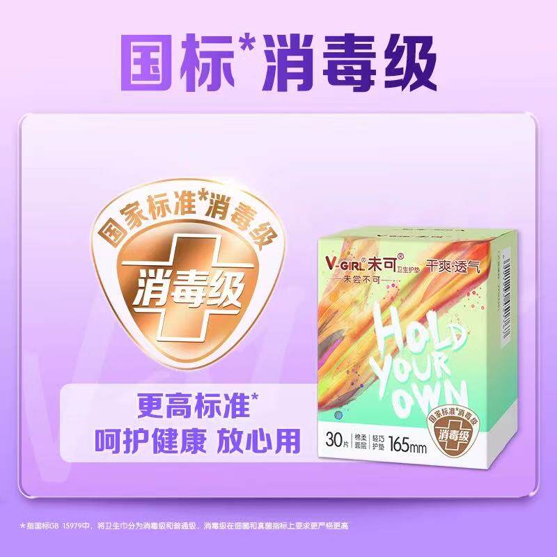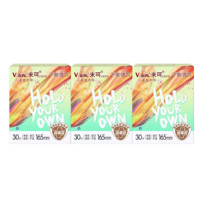 📚 【消毒级】V-GIRL未可迷你巾护垫165m30片纯棉日用少女姨妈卫生巾