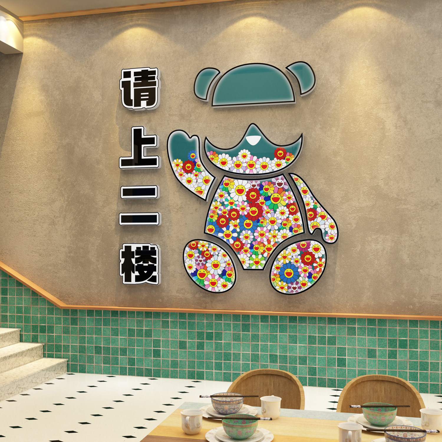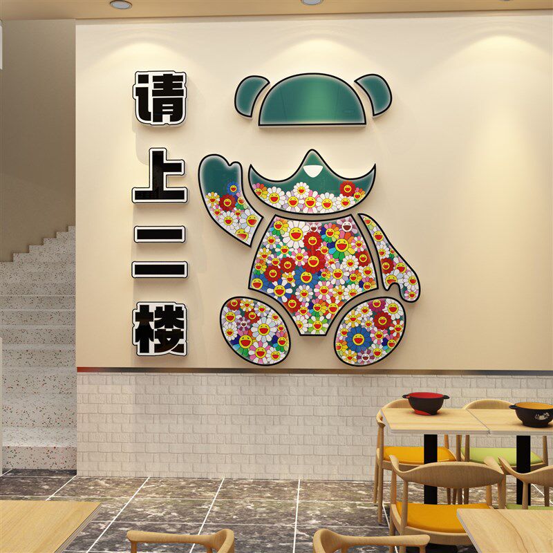 📚 饭店墙面装饰火锅烧烤请上二楼梯台阶指示牌创意标语贴画欢迎光临