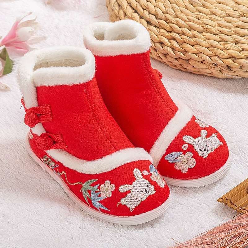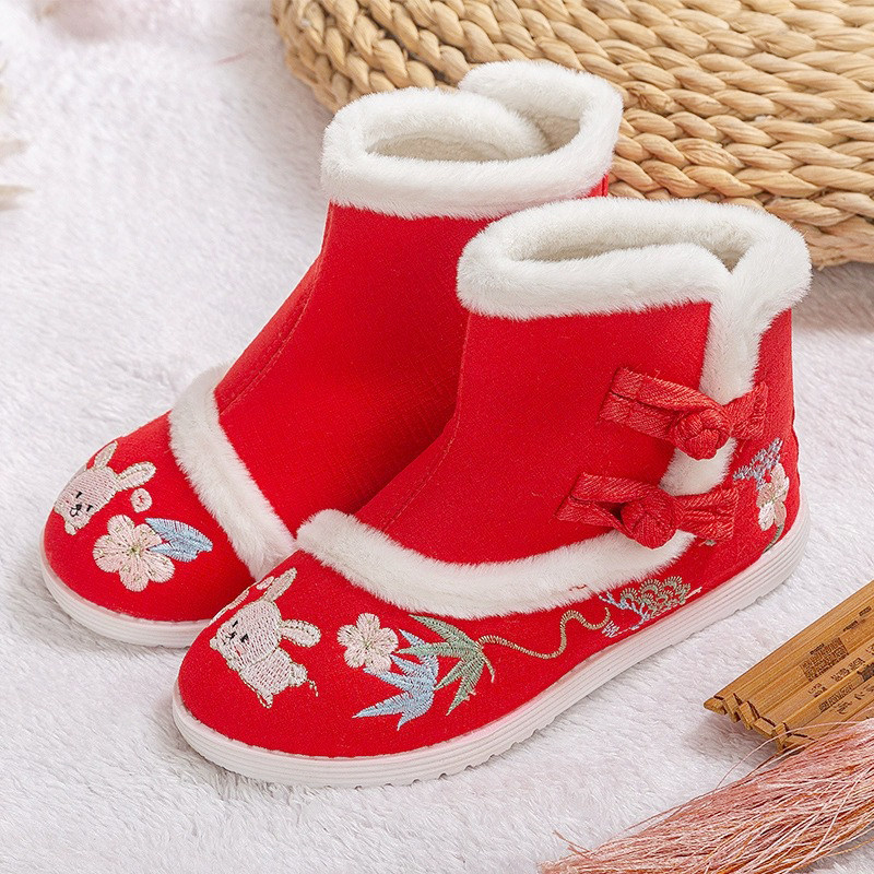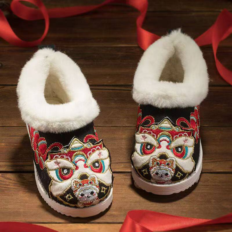 📚 儿童冬季加绒汉服虎头鞋宝宝中国风刺绣复古中式加棉加厚演出鞋子