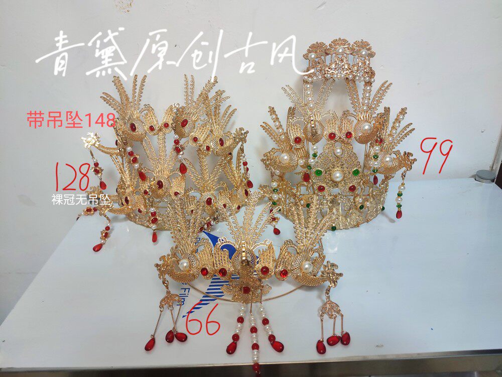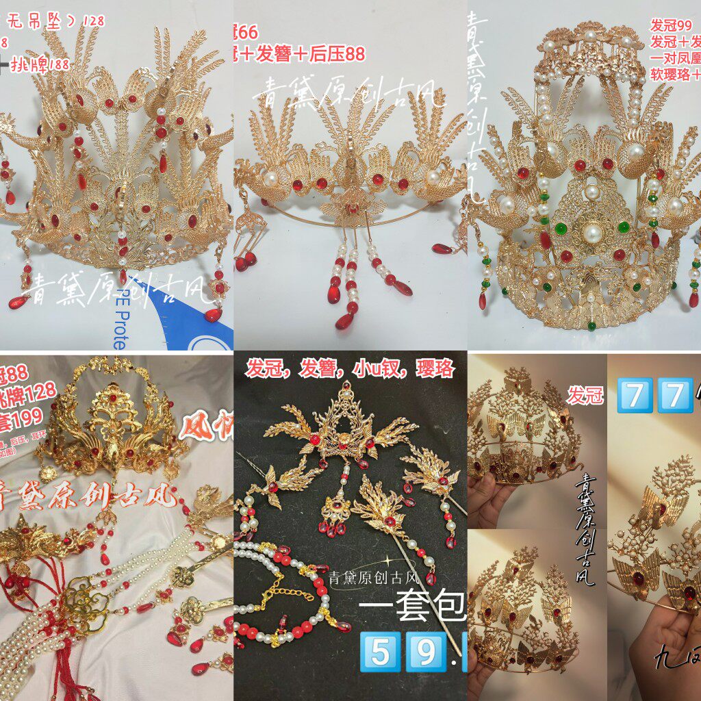 📚 大发冠合集青黛原创古风汉服配饰仿花丝凤凰重工婚嫁头饰明制挑牌
