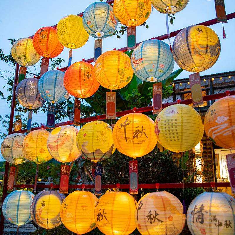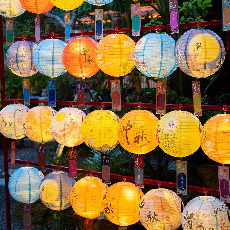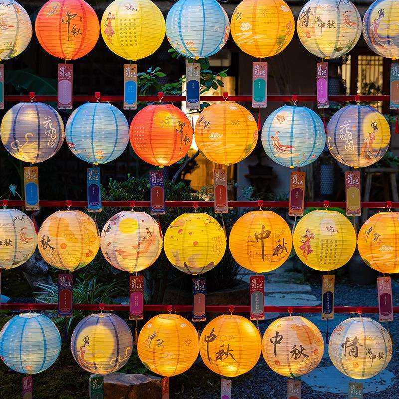 📚 纸灯笼中秋节中国风猜灯谜带灯挂饰装饰品中式发光花灯场景布置