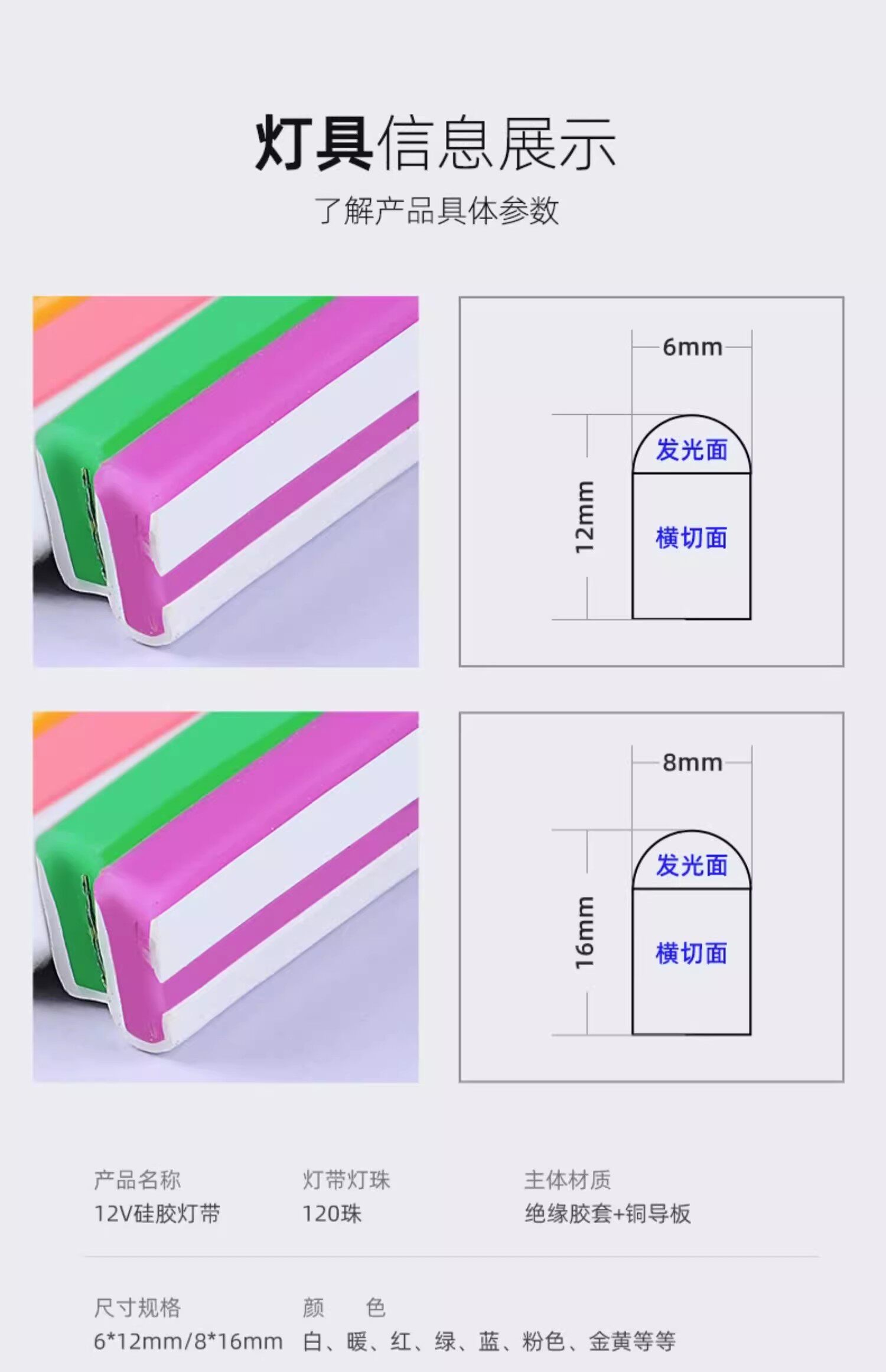 📚 12V任意剪切圆形360度通体发光柔性霓虹灯带装修装饰户外防水灯带