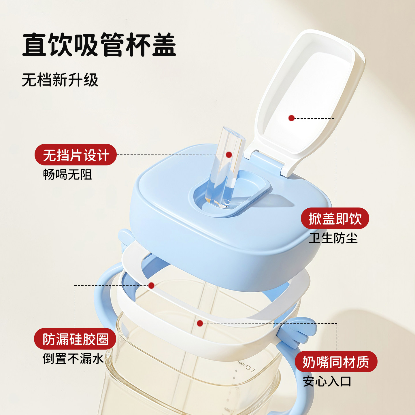 📚 适配赫根hegen直饮吸管奶瓶配件宽口径多功能直饮吸管喝水方杯盖