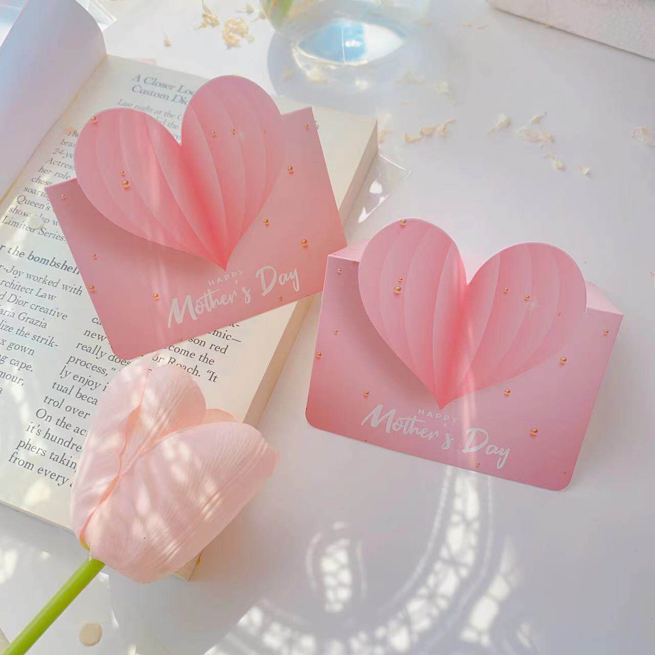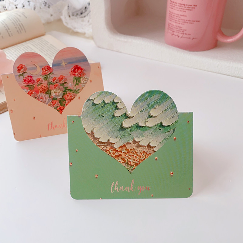 📚 爱心镂空感谢小卡片母亲节贺卡祝福留言花店蛋糕店空白写字可定制