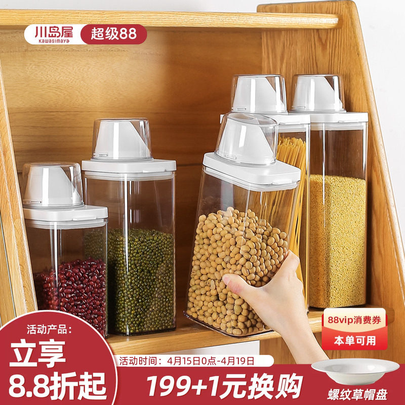 📚 川岛屋密封罐食品级五谷杂粮收纳盒厨房淀粉生面粉白糖储存储物罐
