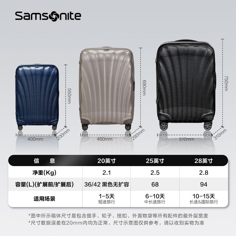 📚 【旗舰店】新秀丽官方旗舰贝壳箱登机箱行李箱可扩容旅行箱 CS2