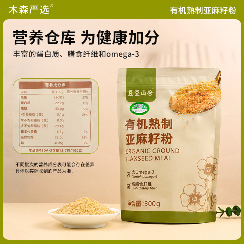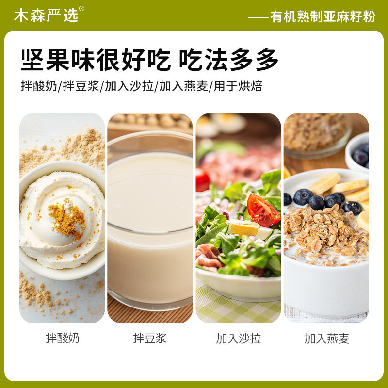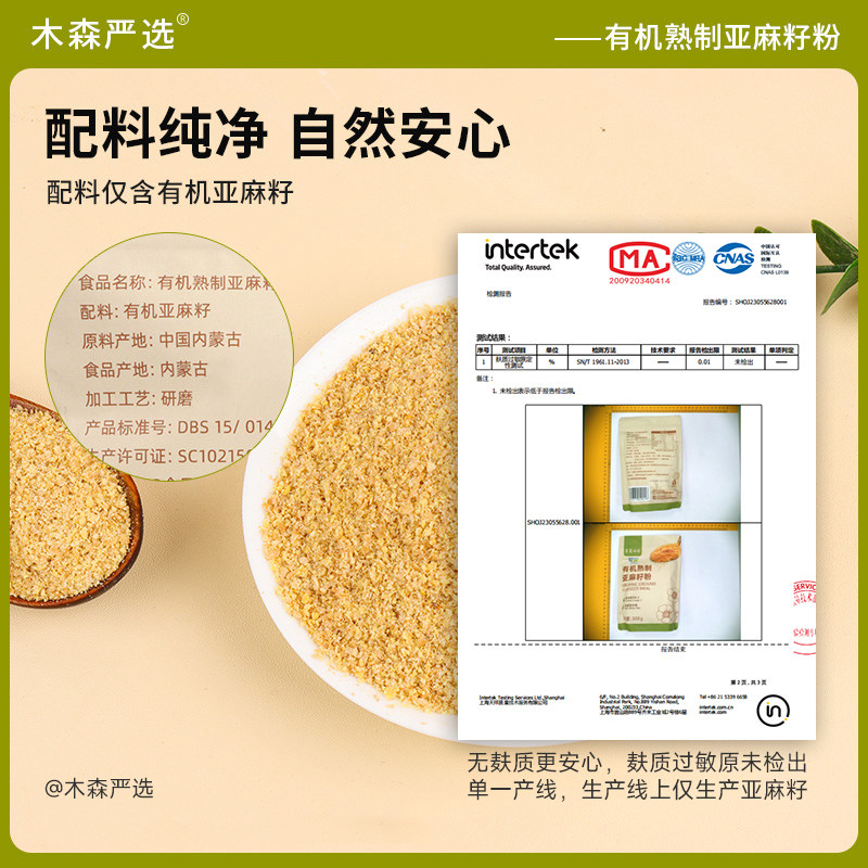📚 木森严选有机亚麻籽粉无麸质熟制金黄色低温烘焙即食高膳食纤维