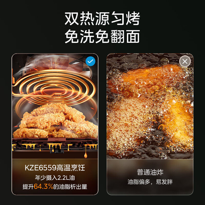 📚 美的空气炸锅上下双热源6.5L大容量可视窗金属内腔电烤箱KZE6559