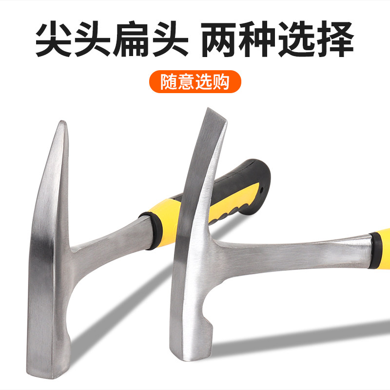 📚 专业地质锤 一体扁头尖头锤 采矿勘探工具小多功能泥工登山铁锤子