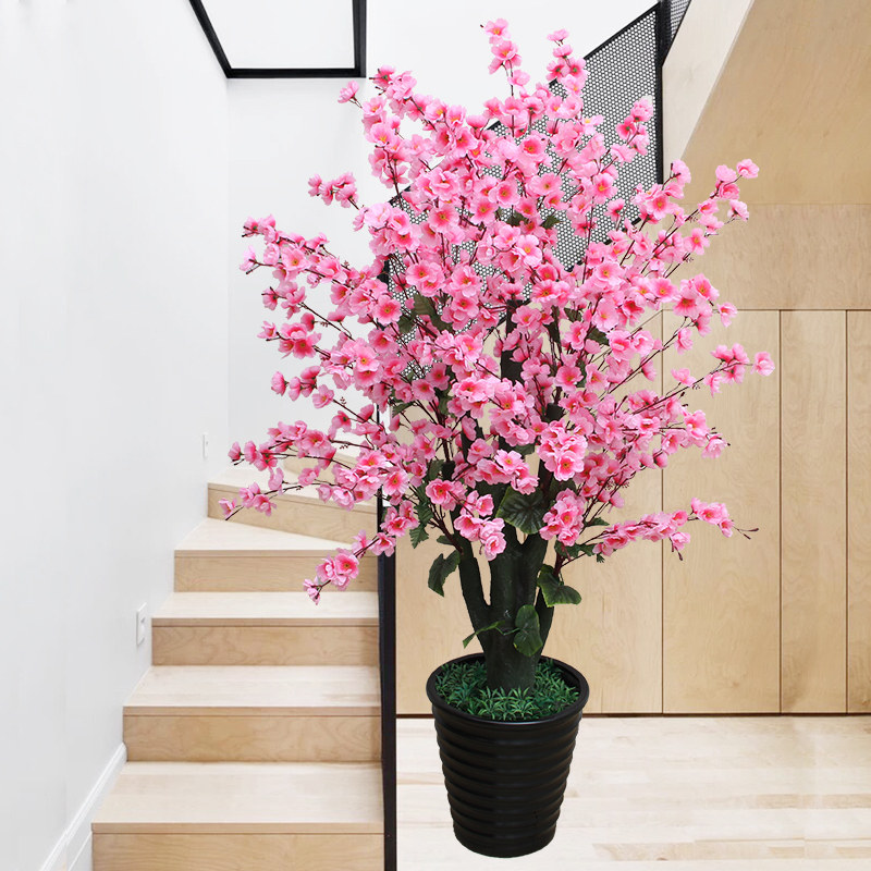 📚 高级感假花装饰桃花树盆栽塑料樱花造景仿生植物客厅绿色仿真绿植