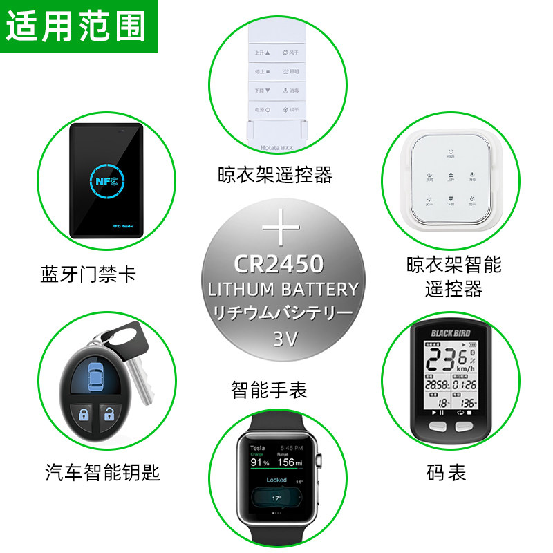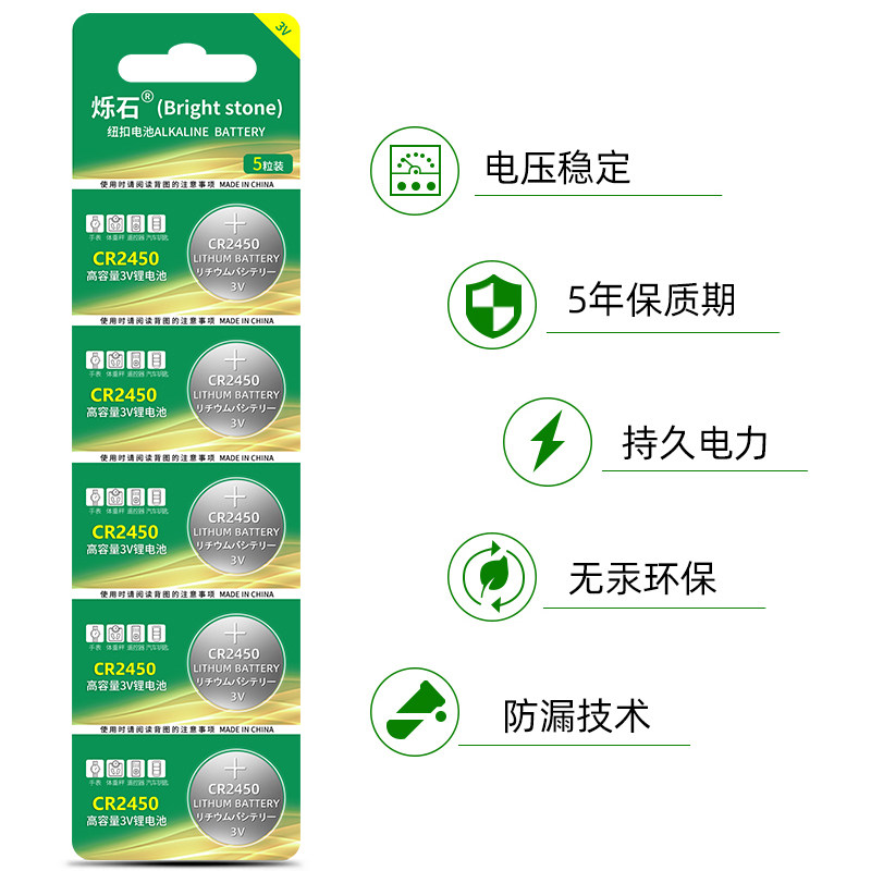 📚 烁石纽扣电池CR2450大容量3V适用宝马1/3/5/7系福特汽车钥匙遥控器电池电子型号领克小温度计米晾衣架