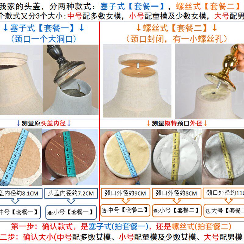 📚 半身模特道具头盖男女小孩童装店假人盖子顶部配件头部拧螺丝布头