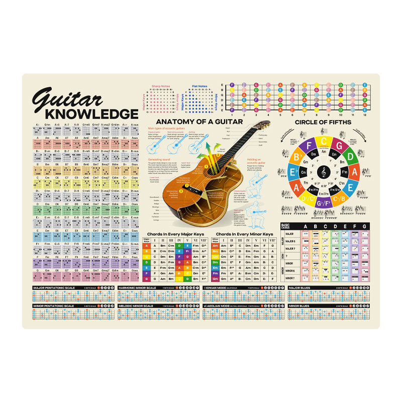 📚 吉他乐理知识五度圈音阶和弦环保学习办公桌垫写字垫餐垫大鼠标垫