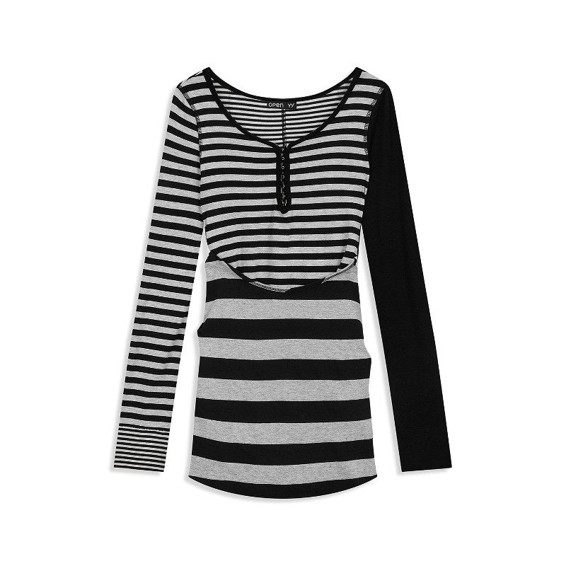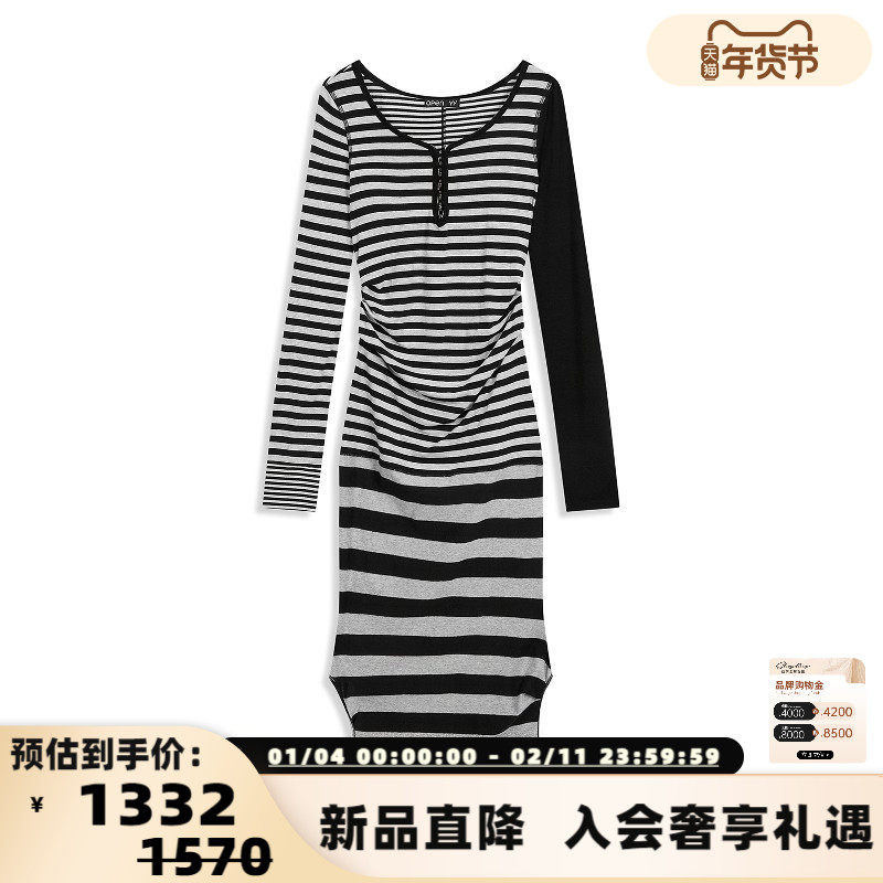 📚 OPEN YY 26春夏新款女士可叠穿中长条纹连衣裙T恤上衣银泰百货