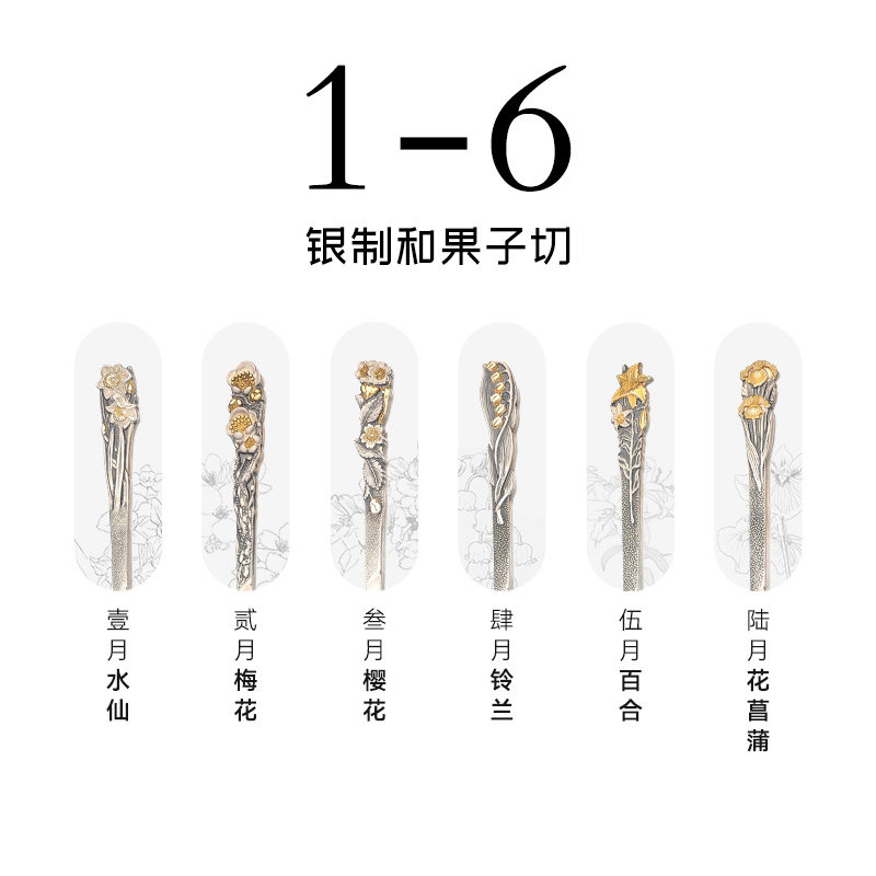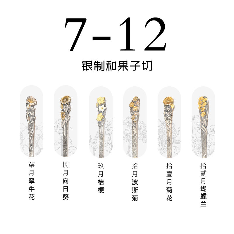 📚 进口宫本商行12月花神月令纯银和果子切高端水果签甜品叉礼物礼盒