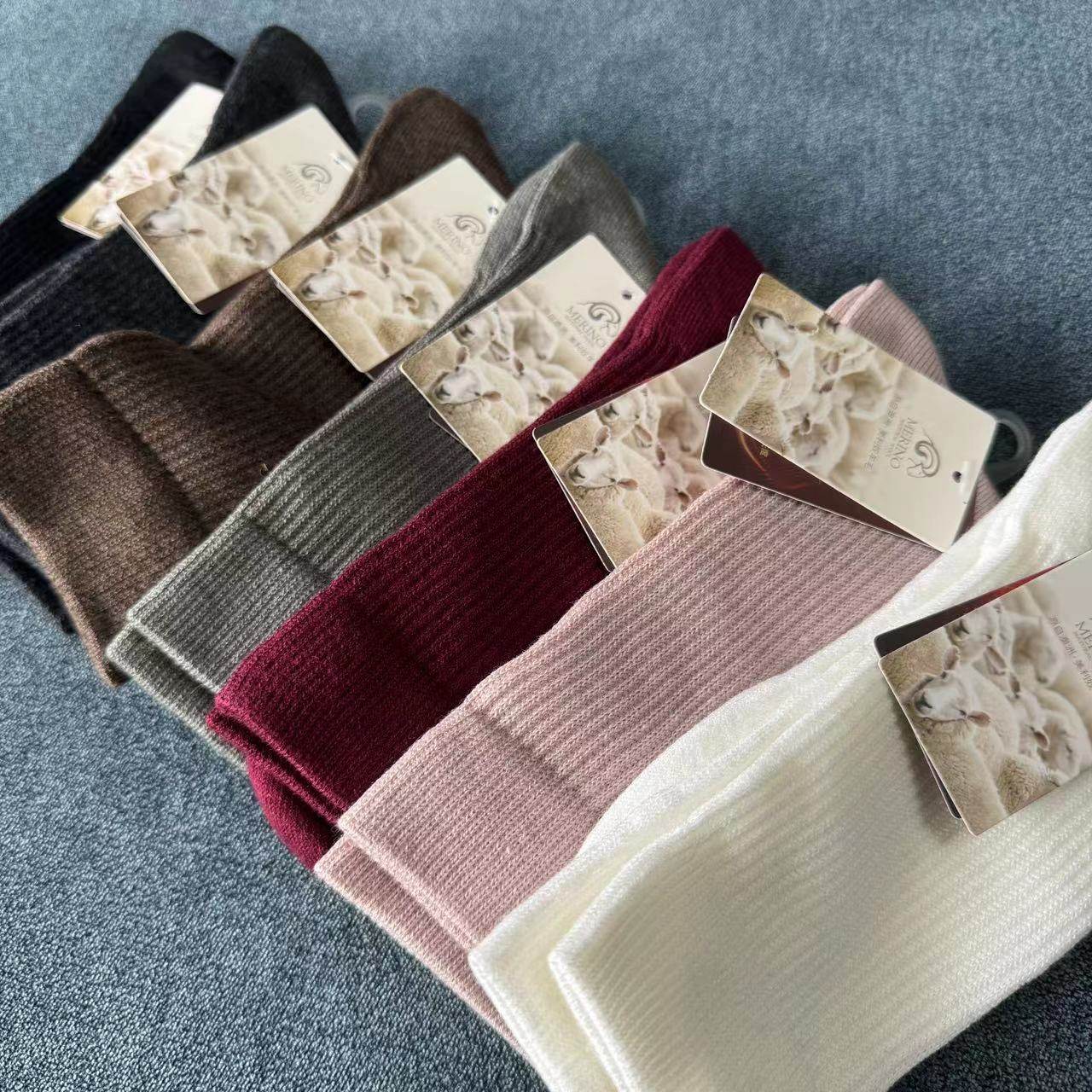 📚 【羊毛精纺 暖烘烘的~】贸易出口男女同款 ins竖条中厚保暖中筒袜