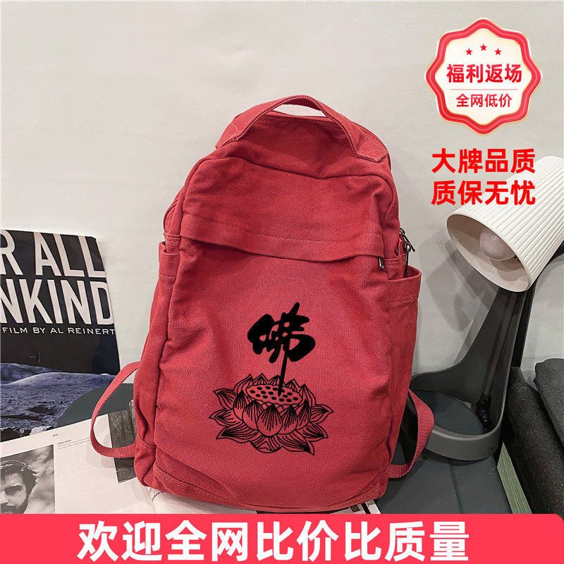 📚 佛包六字真言居士包僧包莲花上香软包中等大小轻便双肩包帆布背包