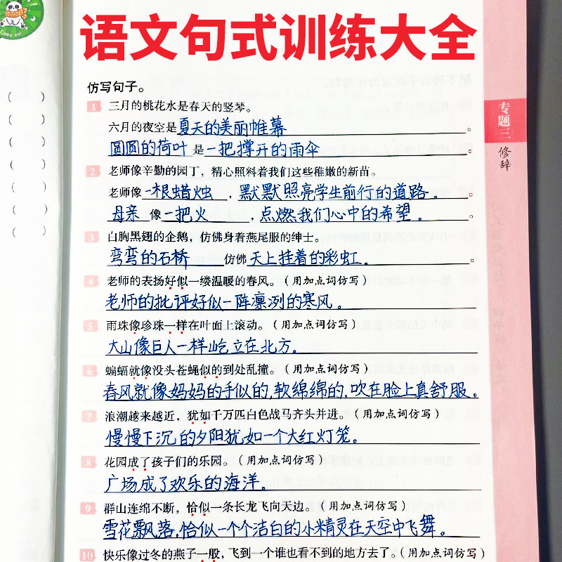 📚 小学语文句式训练大全一二三四五六年级优美句子积累大全积累与默写天天练扩句仿句组词造句修改病句照样子写句子专项强化训练习册