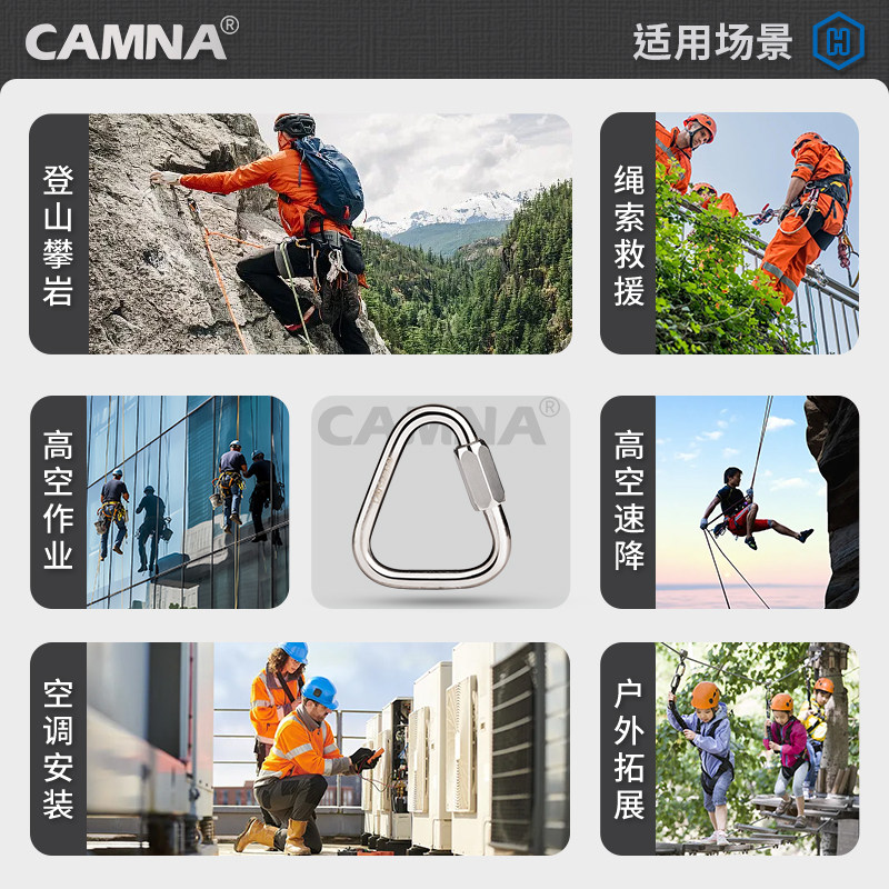 📚 三角形梅陇锁登山攀岩锁不锈钢主锁扣高空作业安全钩背包卡扣快挂