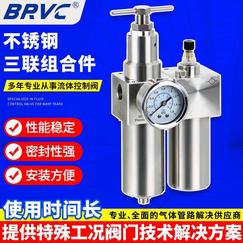 📚 气动执行器三联件不锈钢三联组合件G1/4压缩空气过滤减压阀