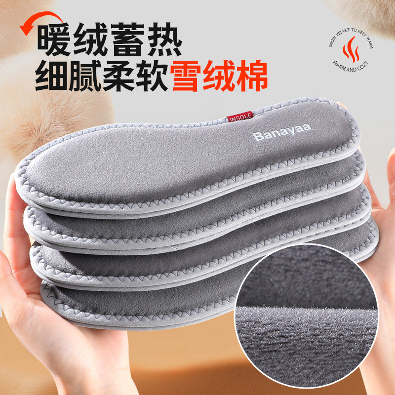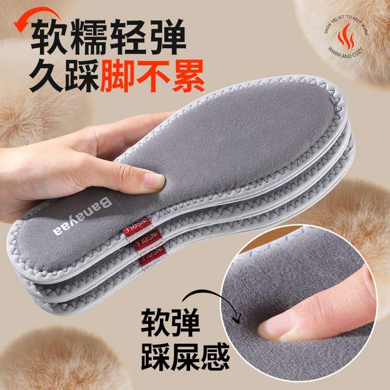 📚 冬季雪绒棉保暖鞋垫加绒加厚毛绒棉鞋垫男女吸汗防臭软底舒适防寒