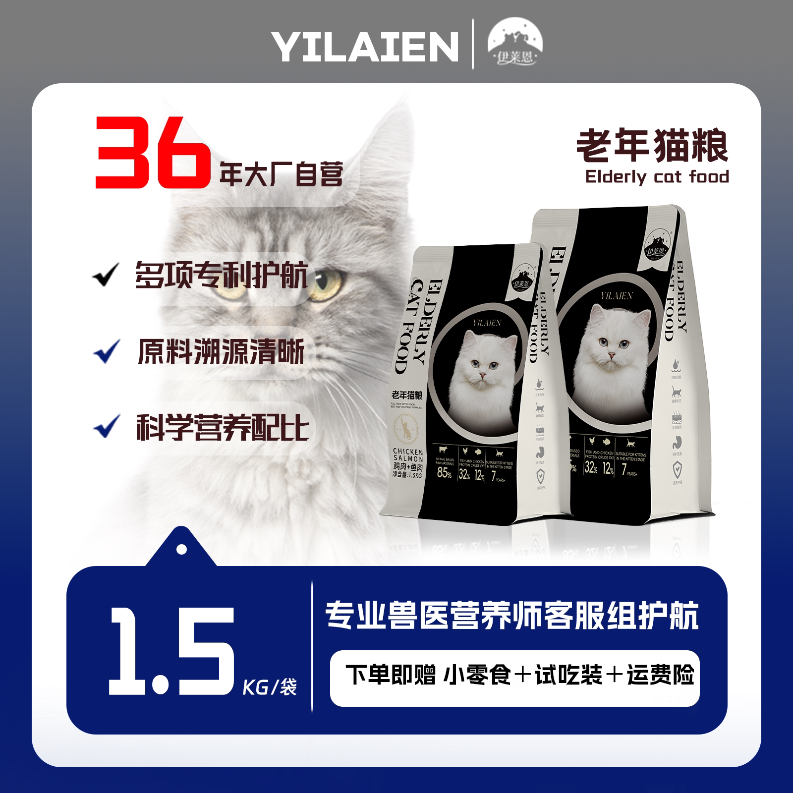 📚 伊莱恩猫粮老年猫粮囤货装7岁以上猫粮全品种全价猫粮膨化猫粮