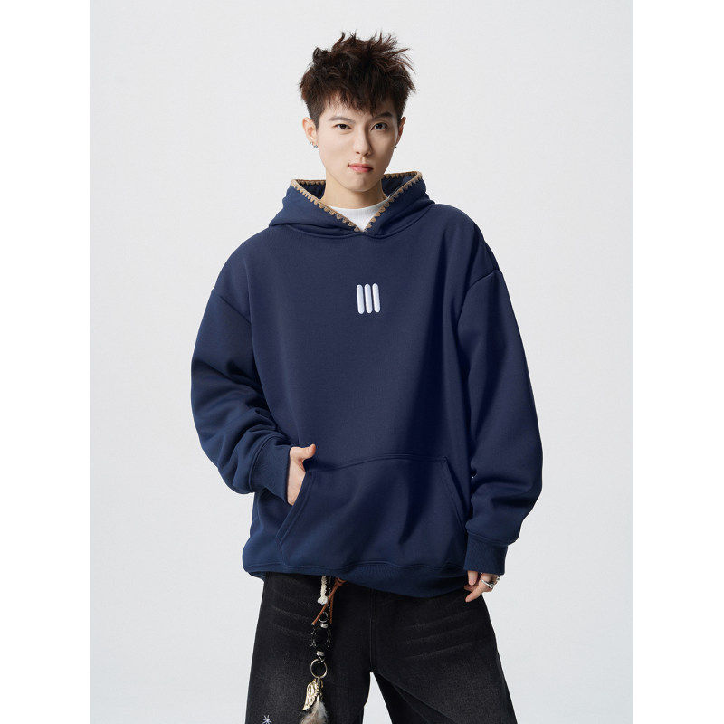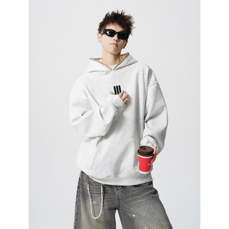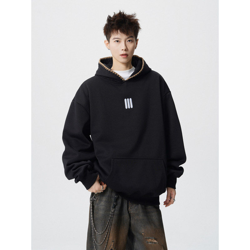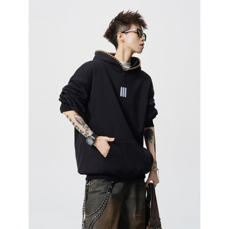 📚 「设计师品牌」重磅刺绣连帽卫衣男秋季潮牌设计感痞帅帽衫外套