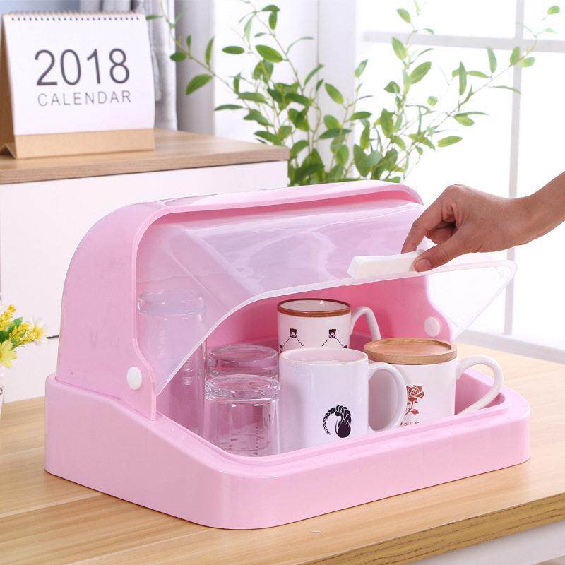 📚 水杯架放玻璃杯子的沥水托盘收纳置物架箱防尘带盖盒创意家用挂架