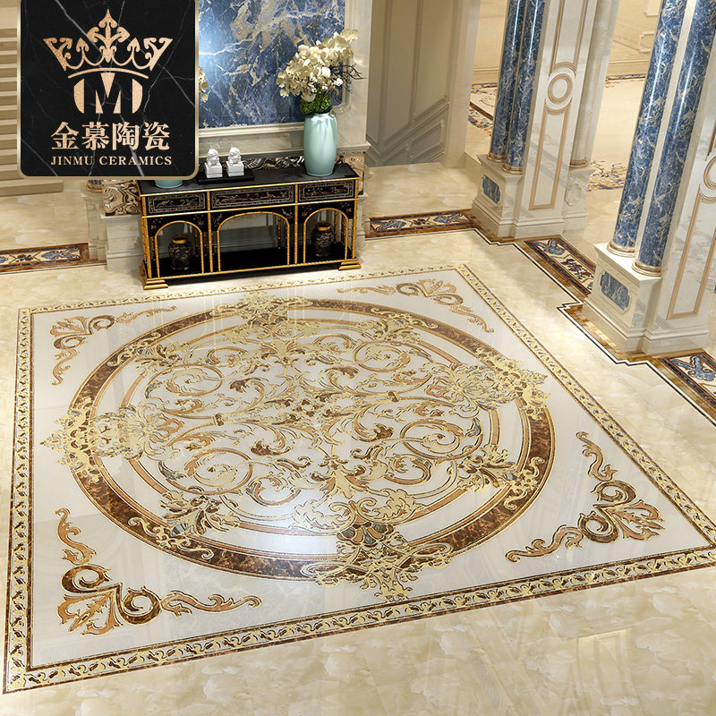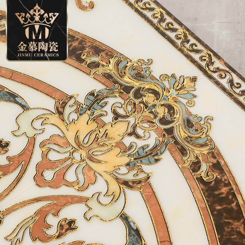 📚 定制拼花地砖金色圆形地心奢华客餐厅酒店别墅地面拼图瓷砖仿水刀