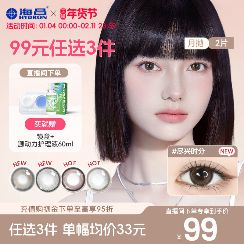 📚 【直播】美瞳月抛99元选3盒海昌精选近视隐形眼镜棕色带度数官方
