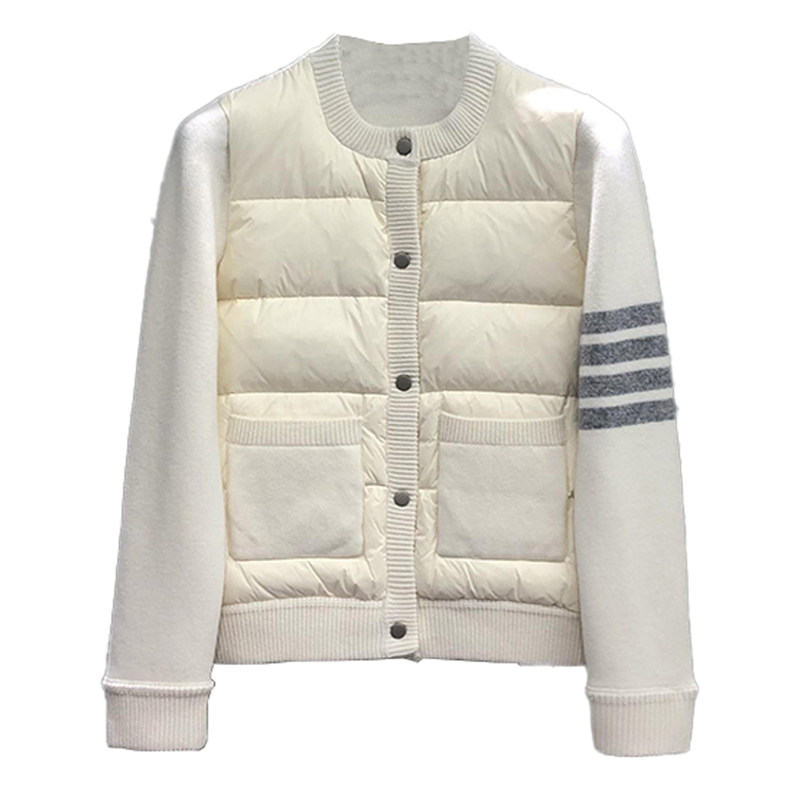 📚 TB冬季羽绒服前后拼接毛衣羊绒针织袖子色织四条杠圆领休闲外套女
