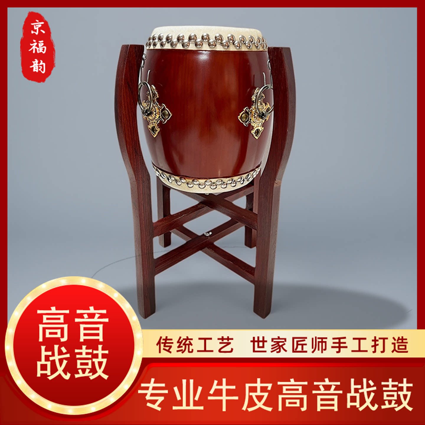 📚 专业6.5寸牛皮高音战鼓婺剧小鼓戏曲剧团高音鼓红木鼓架堂鼓红鼓