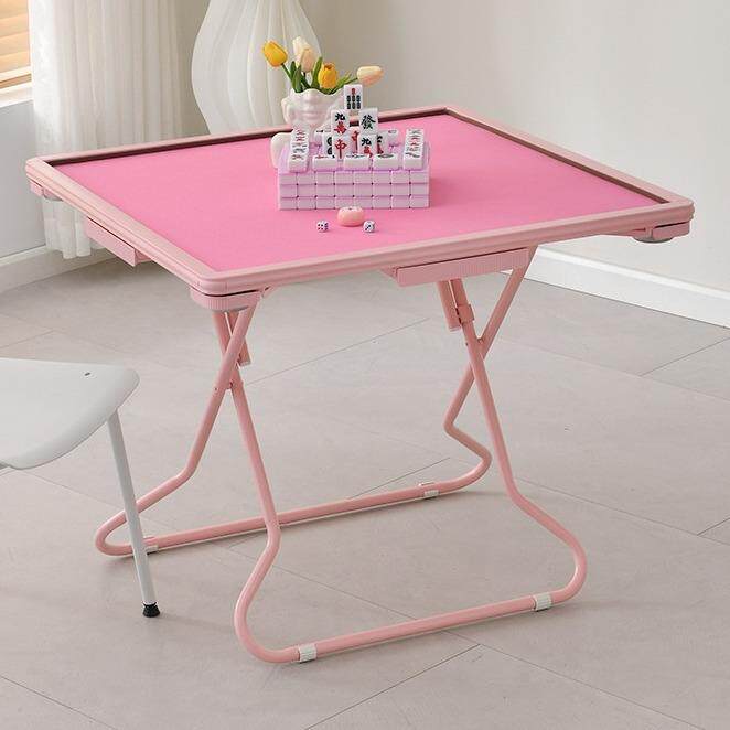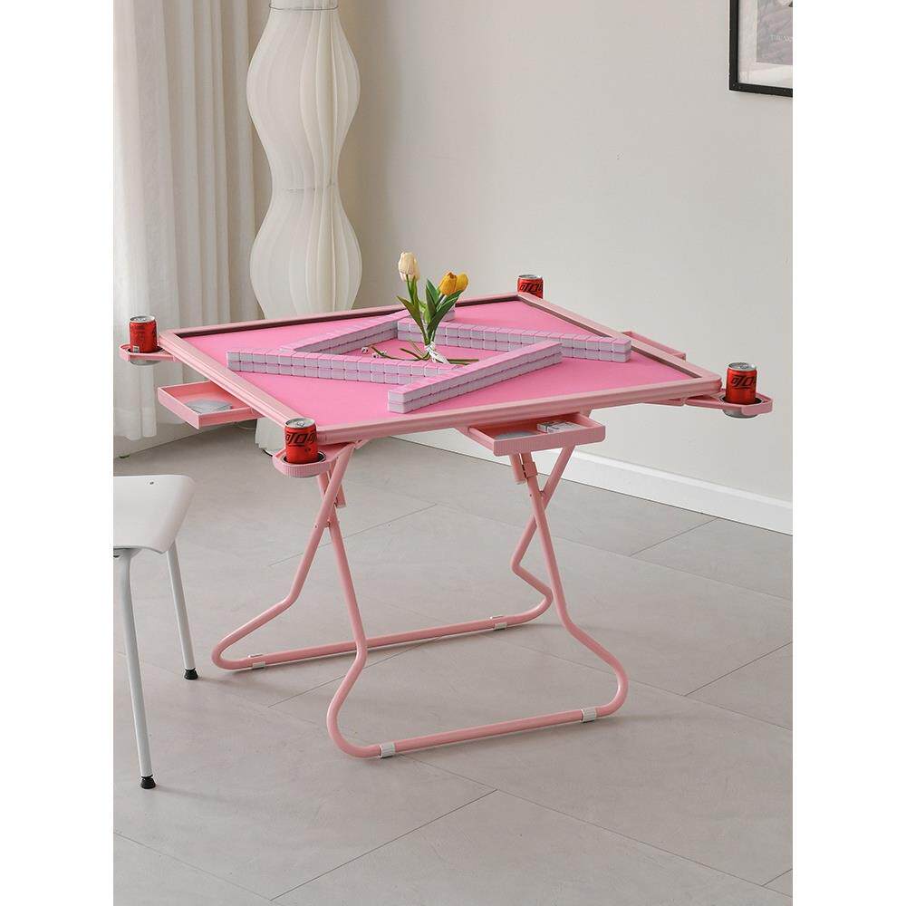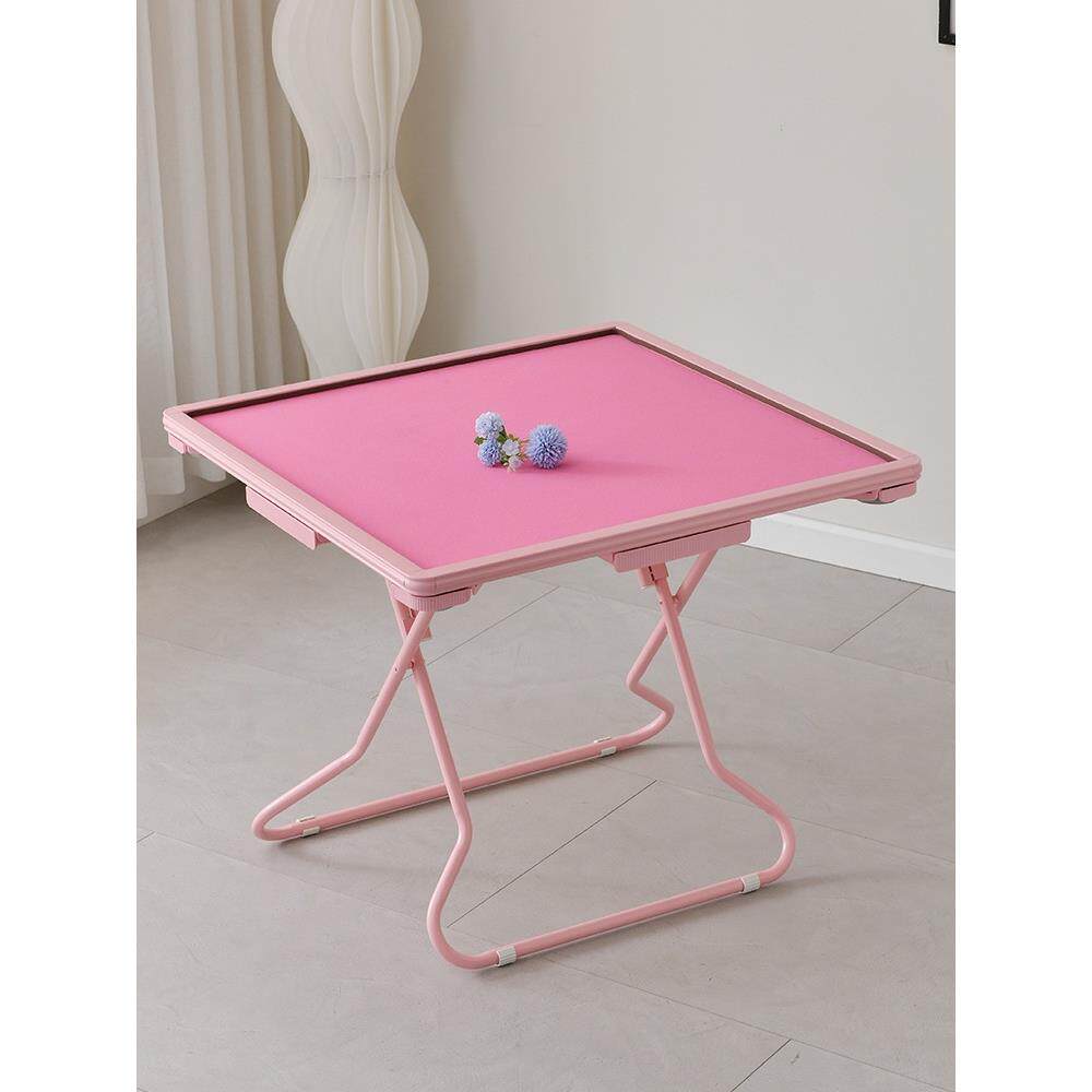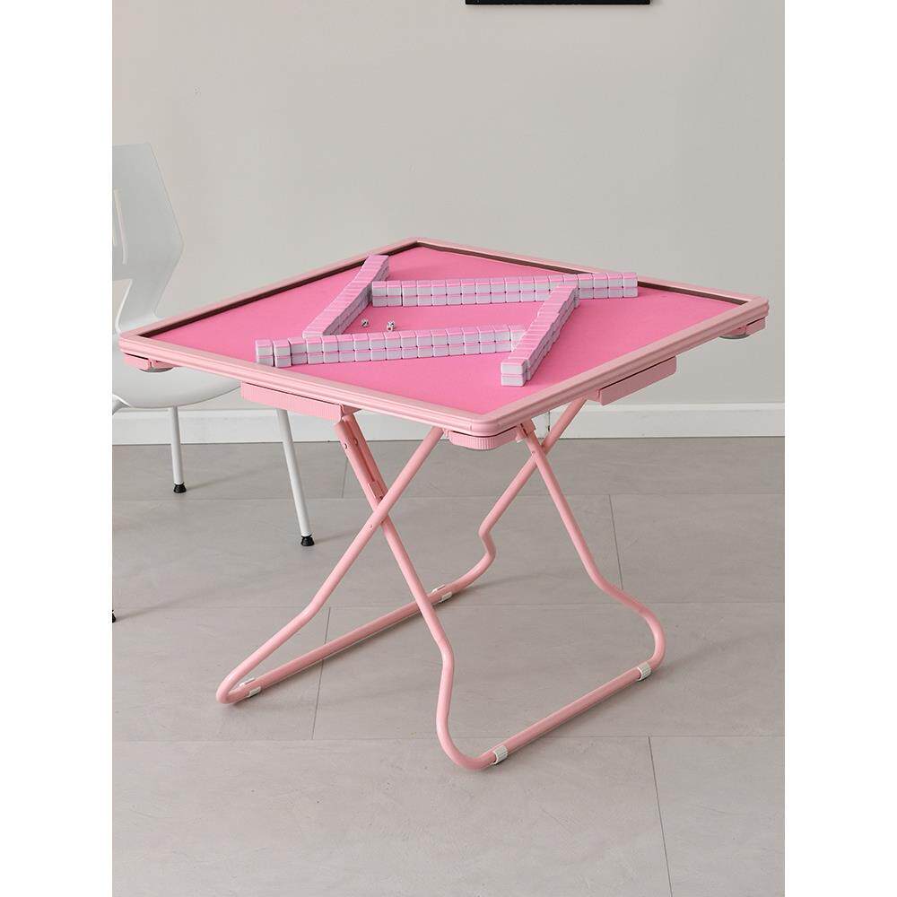 📚 家用可折叠麻将桌小户型手搓棋牌桌便携式简约手动粉色静音麻拉车