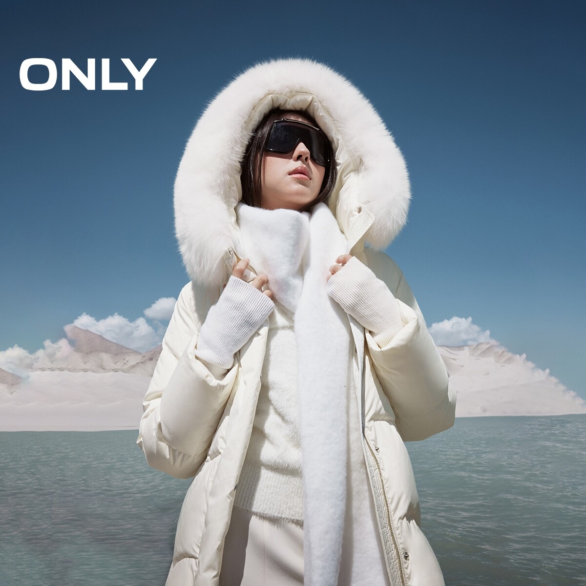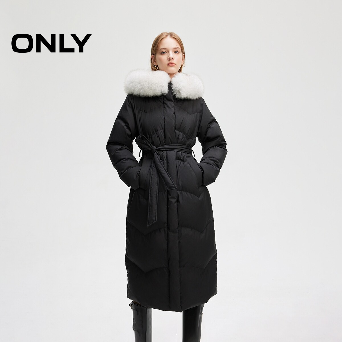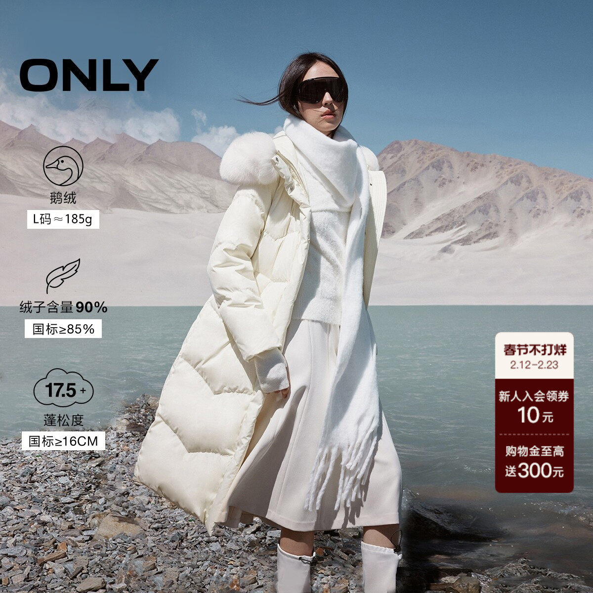 📚 【90白鹅绒】ONLY奥莱冬季新款显瘦长款毛领连帽羽绒服女