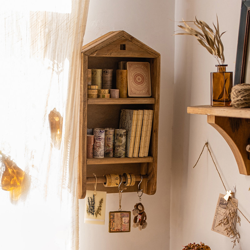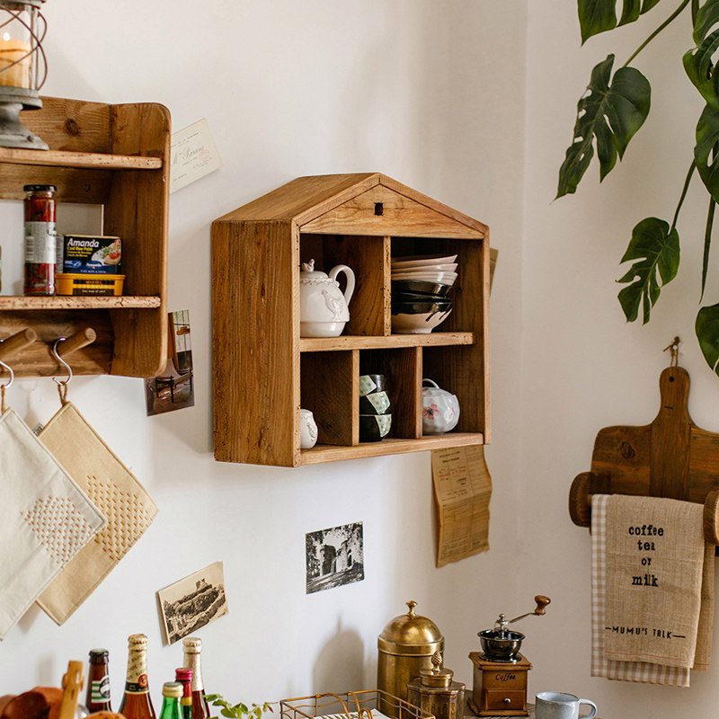 📚 岩璞实木壁挂壁柜收纳格子客厅厨房书房置物架复古做旧美式欧式风