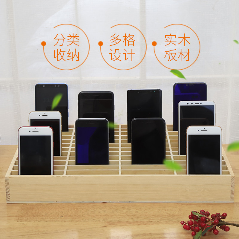 📚 新品小格子木盒前台酒店名片房卡收纳整理桌面木质多格手机管理架