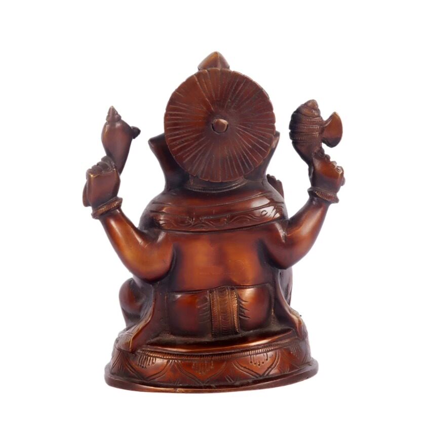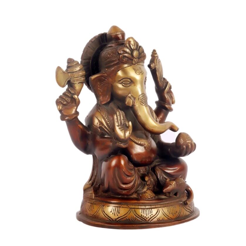 📚 印度手工制Ganesha黄铜象头神像双色调巧克力色和金色高度 8 英寸