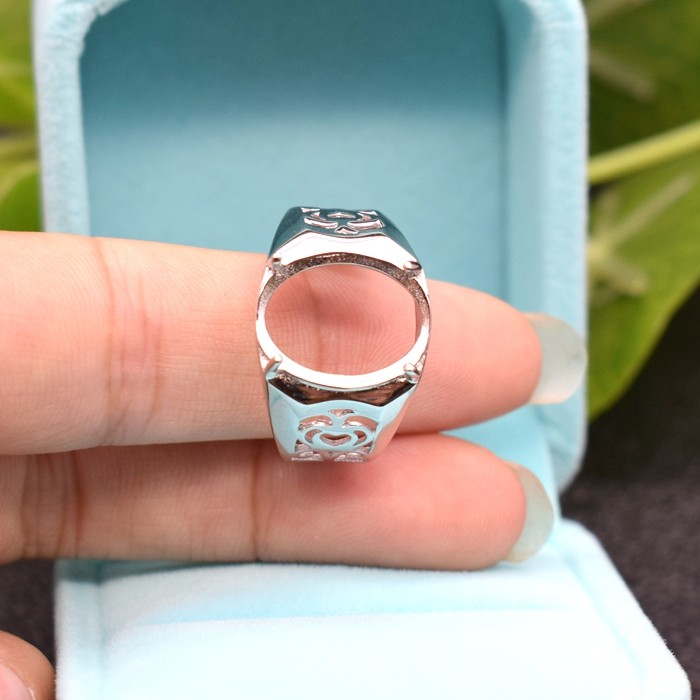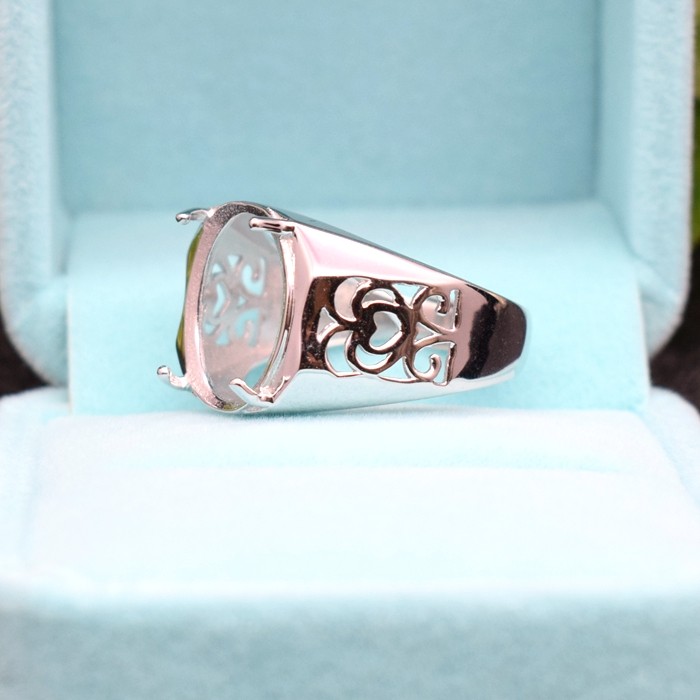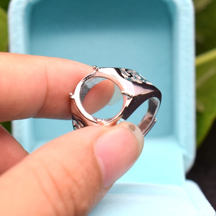 📚 韩版镀18K白金戒托男款椭圆形戒指空托镶嵌宝石925纯银托活圈diy