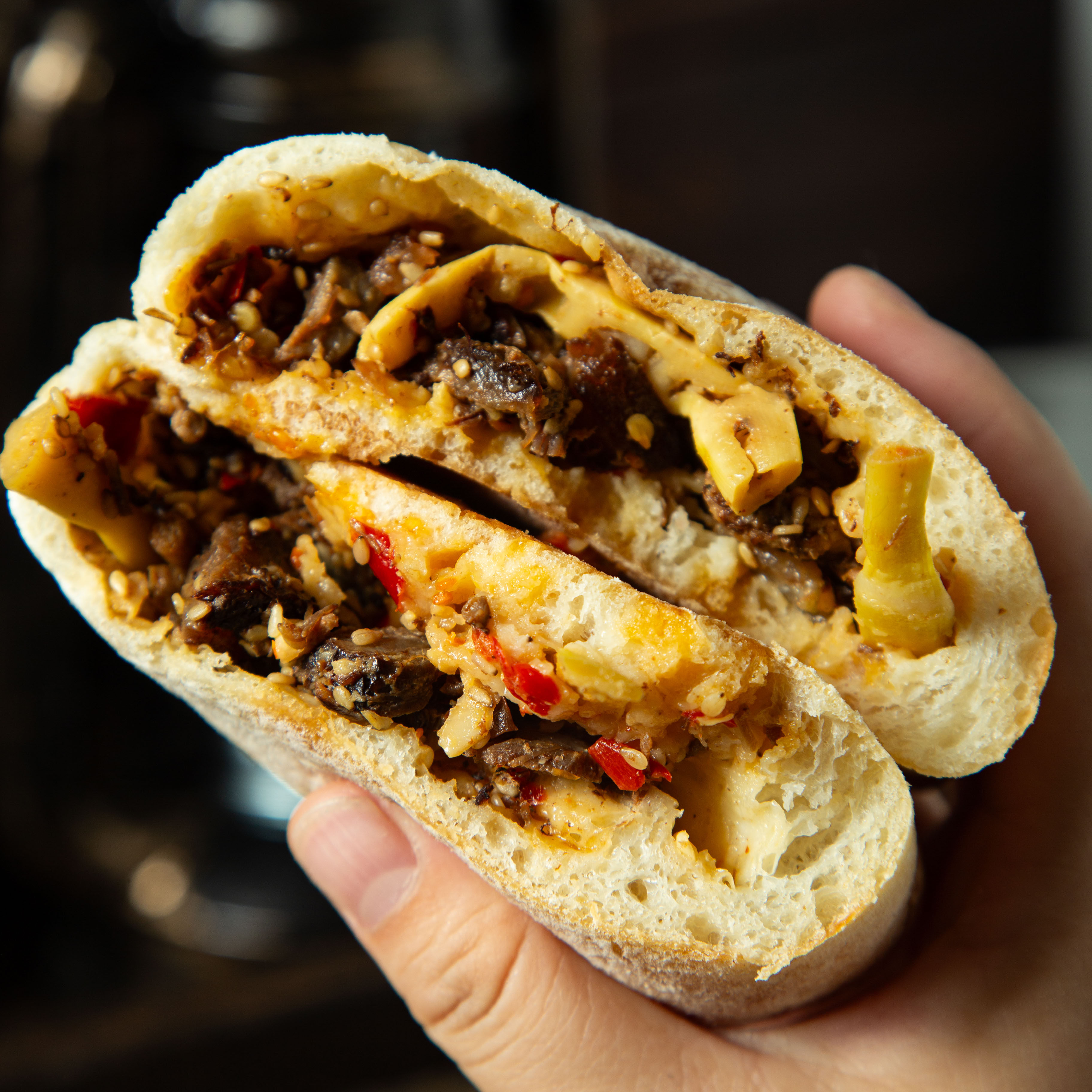 📚 杏柠果新酸笋牛肉恰巴塔手作面包欧包营养早餐下午茶网红(辣口)