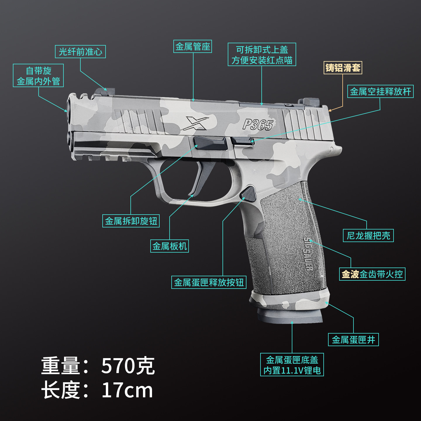 📚 大牛p365西格绍尔sig电手金波铝滑火控电动成人男下场玩具模型枪