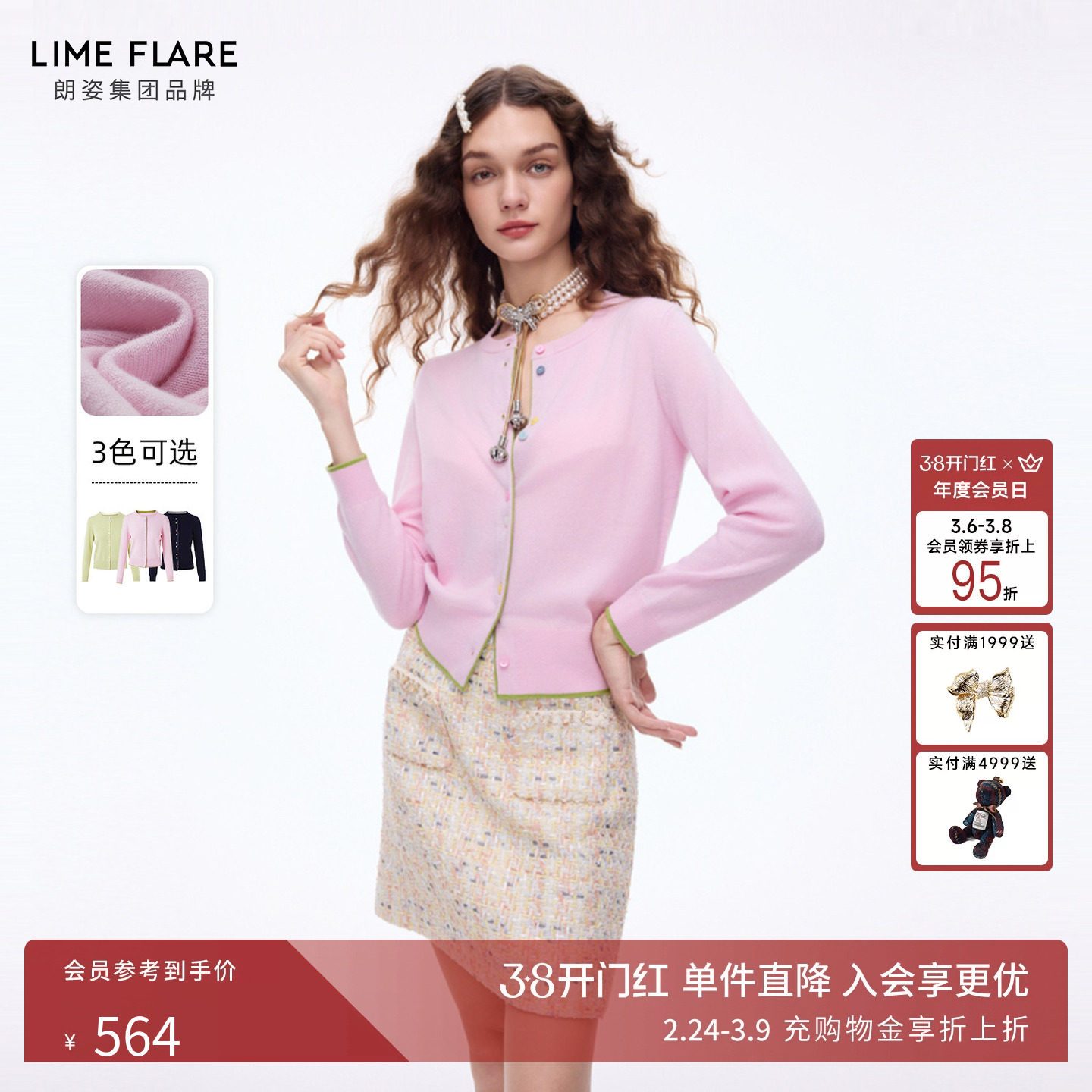 💥种草!朗姿莱茵福莱尔多巴胺撞色羊绒衫女法式甜美针织开衫上衣26春新款,券后价只需1380!💖