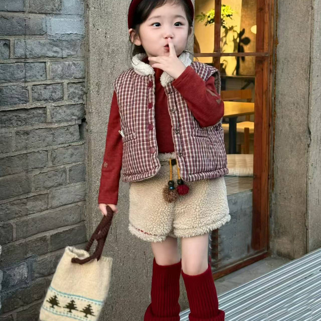 👢套装中的马甲设计独特,保暖又时尚,两面穿更添层次感。穿上它,仿佛在寒风中找到了一个小天地。💫