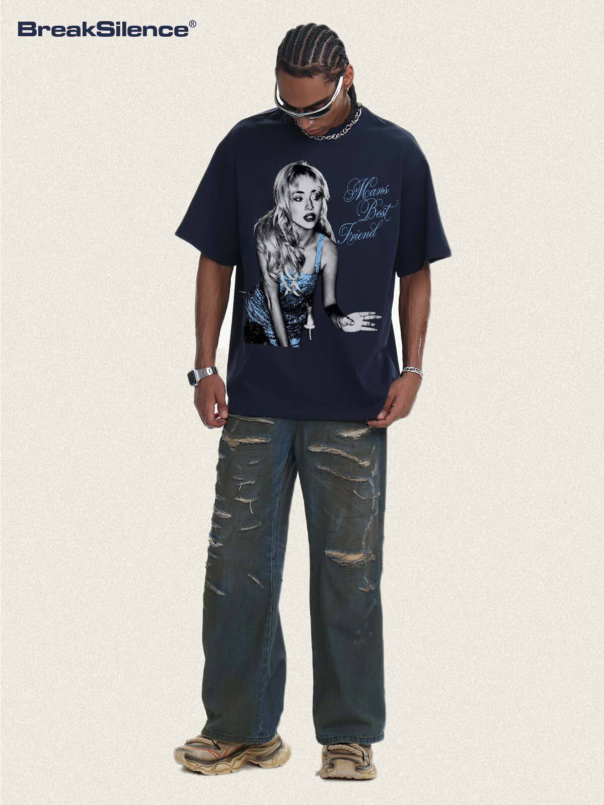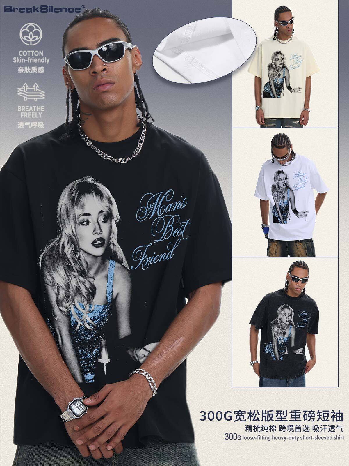 📚 Miley Cyrus 美式高街复古炒雪花短袖T恤男女宽松纯棉小领口半袖