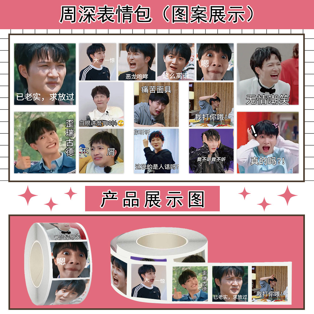📚 1000贴周深表情包卷卷贴明星趣味搞笑装饰手机壳防水不干胶贴画