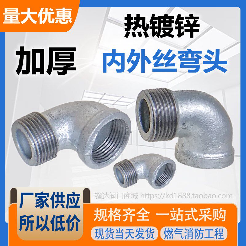 📚 冷热镀锌内外牙丝弯头90度玛钢水管件丝口扣铁弯头6分1寸2DN20 25