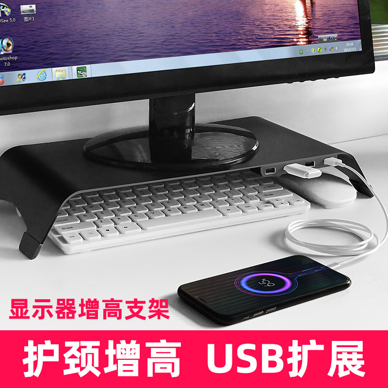 📚 电脑显示器增高架办公室桌面收纳支架带usb笔记本置物架金属铁艺