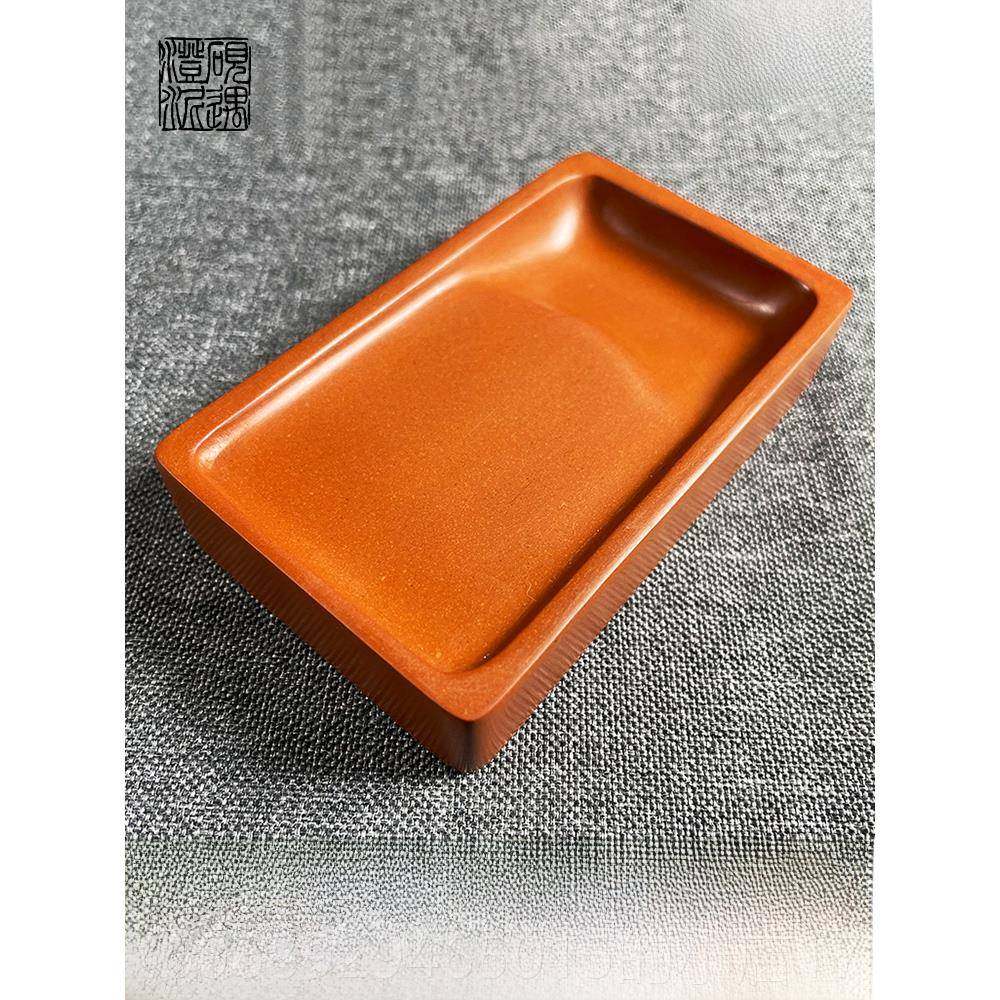 📚 正品椭圆形素色砚泥砚用非物质文化遗书产手雕中传统烧窑法专砚台