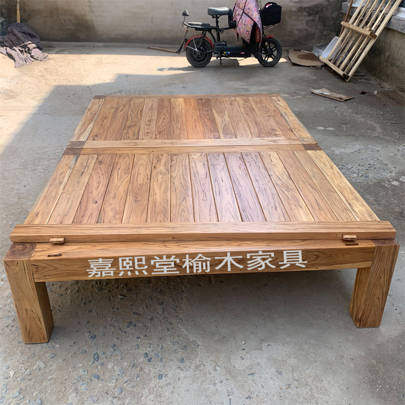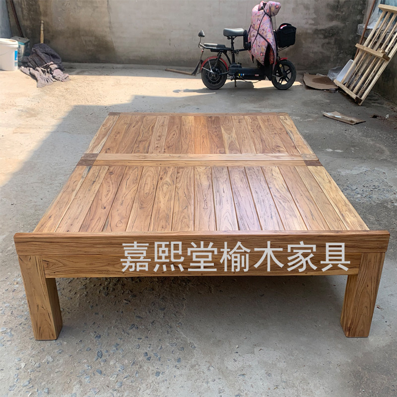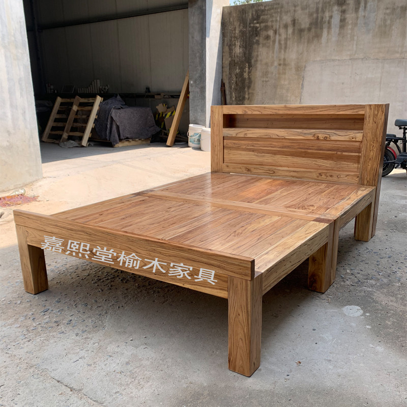 #全实木床 #硬板床 #双人床 #胖人友好 #简约风 #榫卯结构 #老榆木床